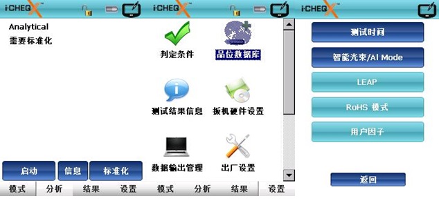 17、儀器自帶標(biāo)準(zhǔn)塊,每次開機(jī)儀器自動標(biāo)準(zhǔn)化,標(biāo)準(zhǔn)化通過,儀器才能正常使用。如標(biāo)準(zhǔn)化不通過,儀器則不能使用。確保儀器每次使用都是處于正常精度保證范圍內(nèi)。