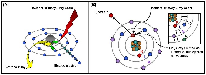 l  當(dāng)能量高于原子內(nèi)層電子結(jié)合能的高能X射線與原子發(fā)生碰撞時,驅(qū)逐一個內(nèi)層電子而出現(xiàn)一個空穴,使整個原子體系處于不穩(wěn)定的激發(fā)態(tài),激發(fā)態(tài)原子壽命約為10-12~10-14S,然后自發(fā)地由能量高的狀態(tài)躍遷到能量低的狀態(tài)。