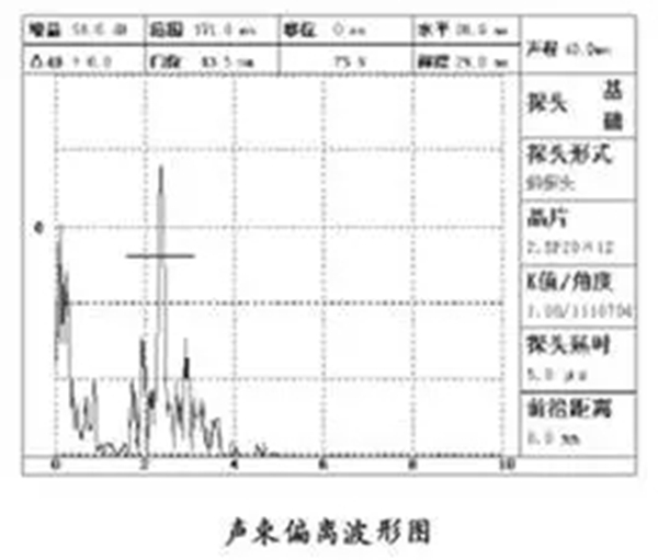 測(cè)量時(shí),探頭應(yīng)放正使波束中心線與試塊側(cè)面平行,前后移動(dòng)探頭,找到50mm孔或1.5mm孔的最高反射波。此時(shí),聲束中心線必然與入射點(diǎn)和圓心之間的連線相重合,即聲束中心線垂直于孔表面。這時(shí),試塊上與入射點(diǎn)相應(yīng)的角度線所標(biāo)的值即為該斜探頭的K值。